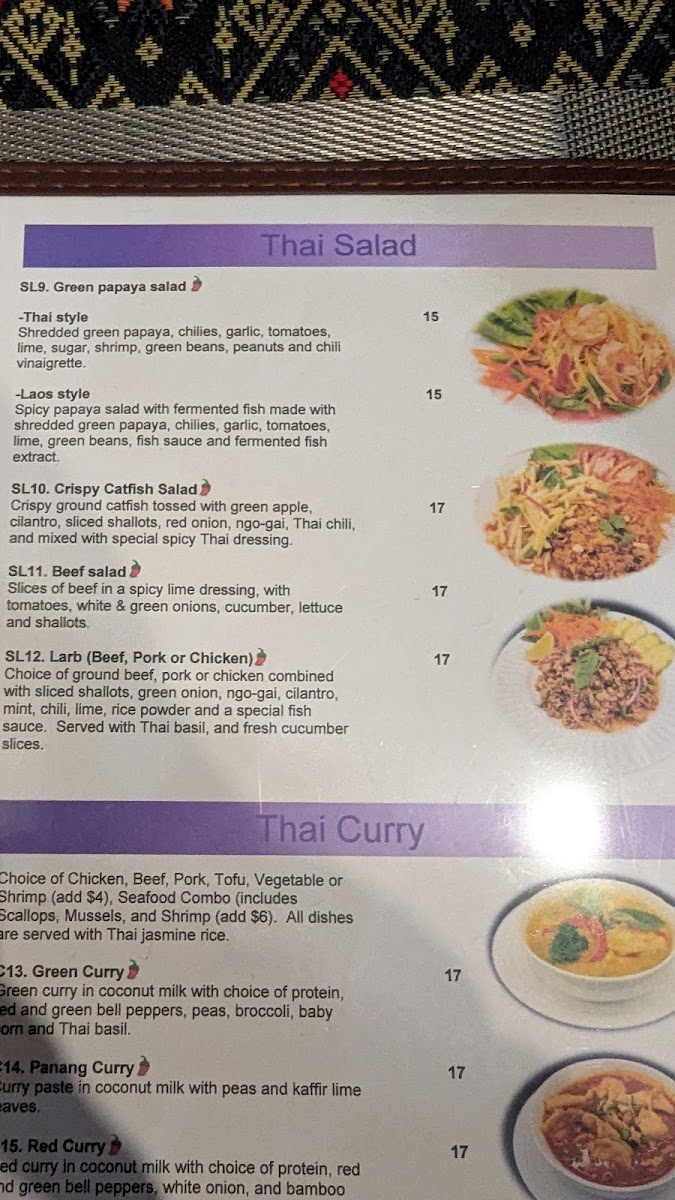 Crispy ground catfish tossed with green apple, cilantro, sliced shallots, red onion, ngo-gai, Thai chili, and mixed with special spicy Thai dressing.